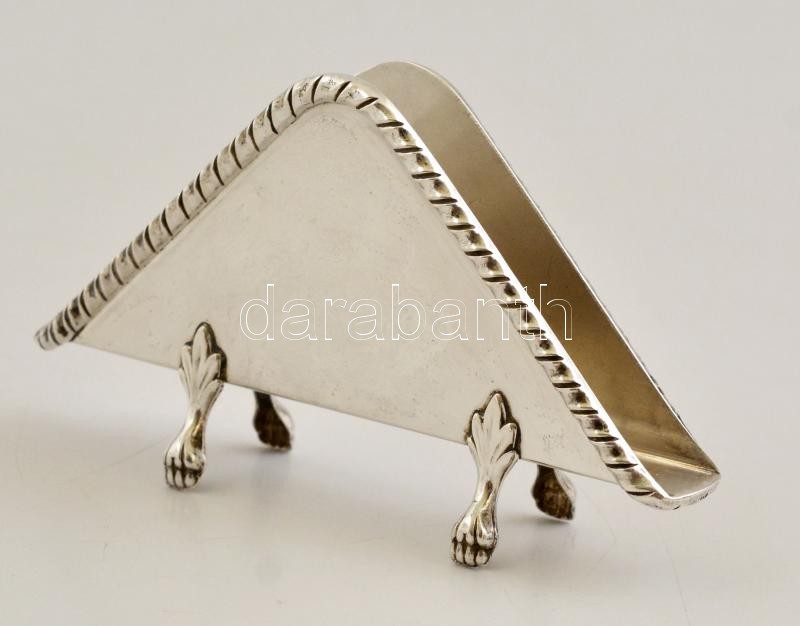 Ezüst(Ag) szalvétatartó, karmos lábakkal, jelzett, 14×7,5 cm, nettó: 8...