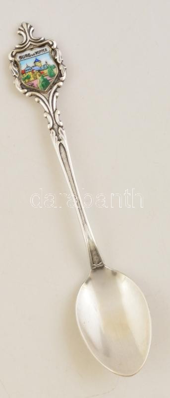 Ezüstözött alpakka "Burg an der Wupper" zománcos címeres díszkanál, h: 10,7 cm