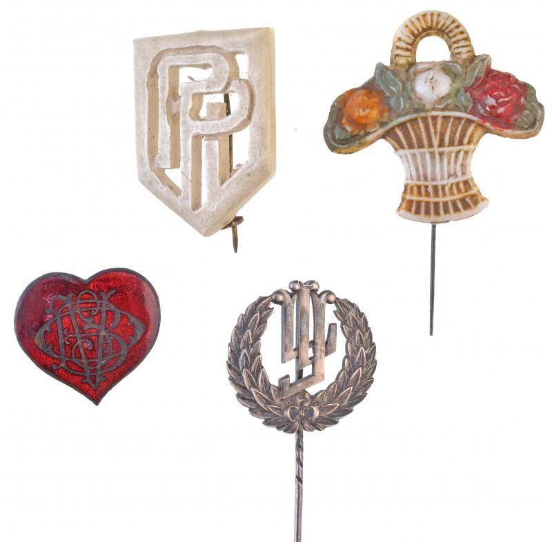 4db klf külföldi jelvény és kitűző, közte 1db jelzett Ag T:2 4pcs of diff badges and pins, including 1pc hallmarked Ag C:XF