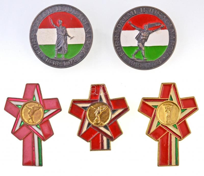 https://www.darabanth.com/en/329-Online-auction/329.0/Numismatics/Faleristics-medals-orders-badges~2500017/7E1967-1988-Forradalmi-Ifjusagi-Napok-jelveny-tetel-5xklf-T1-~II1798948