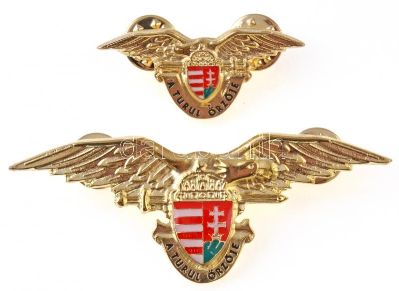 DN "A Turul Őrzője" aranyozott, zománcozott jelvény (2x) klf...