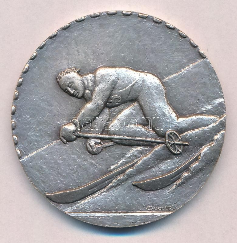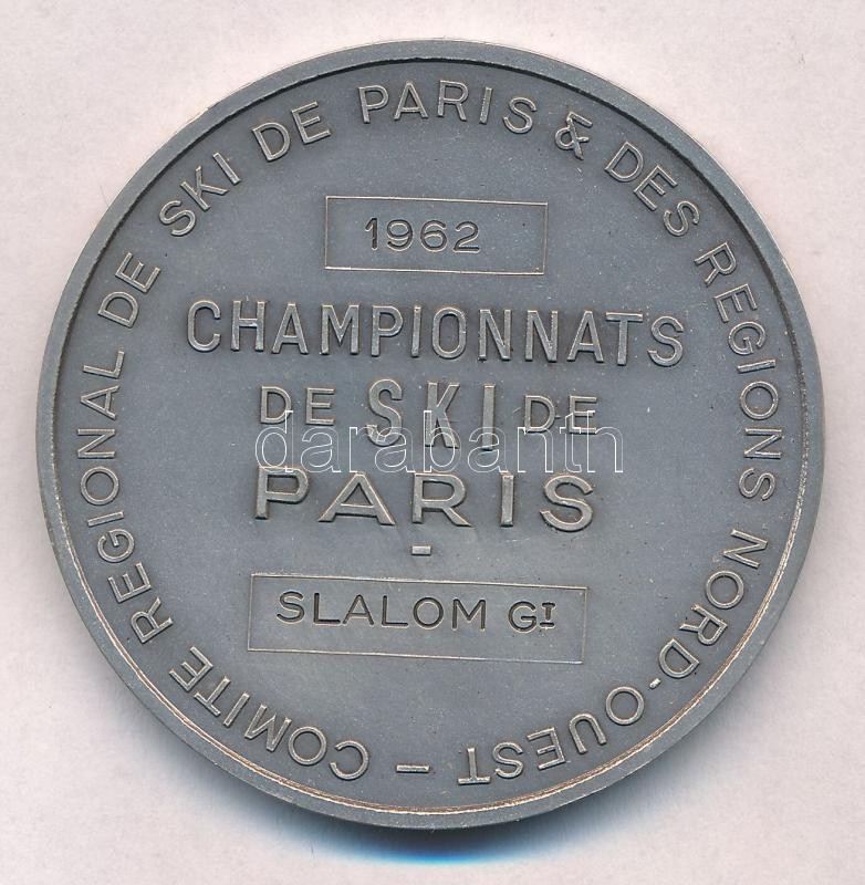Description: Franciaország 1962. "Párizsi síbajnokság" ezüstözött Br díjérem, eredeti tokban (50mm) T:1-