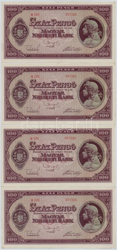 https://www.darabanth.com/en/329-Online-auction/329.0/Numismatics/Hungarian-Banknotes~2500007/1945-100P-4x-sorszamkovetok-TII-III-szep-papir~II1834812
