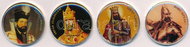 1992- 50Ft ezüstözött Cu-Ni (4xklf) "Nagy Magyarok / Zrínyi Miklós, Árpád fejedelem, Szent László, Dobó István" multicolor, tanúsítványokkal T:2