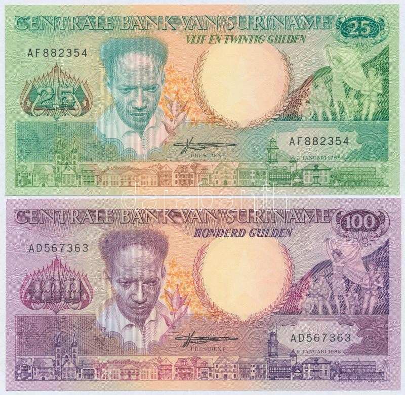 Suriname 1988. 25 Gulden + 100 Gulden C:UNC