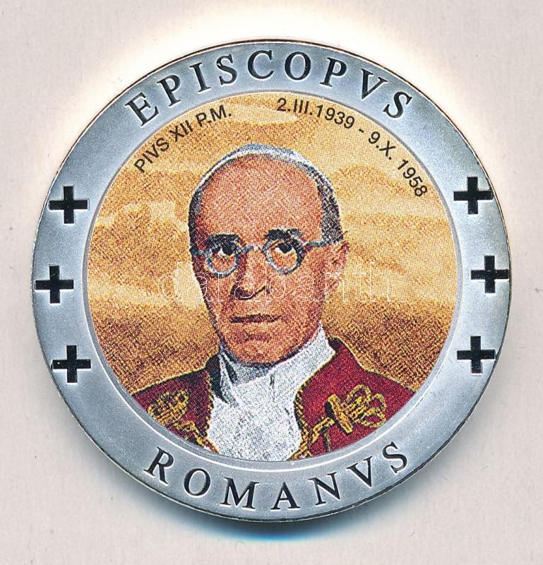 Vatikán ~2005. "XII. Pius pápa" ezüstözött multicolor emlékérem (40mm) T:PP