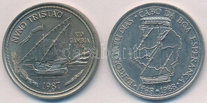Portugália 1987. 100E Cu-Ni "Nuno Tristao" + 1988. 100E Cu-Ni "Bartolomeu Dias" T:1-,2