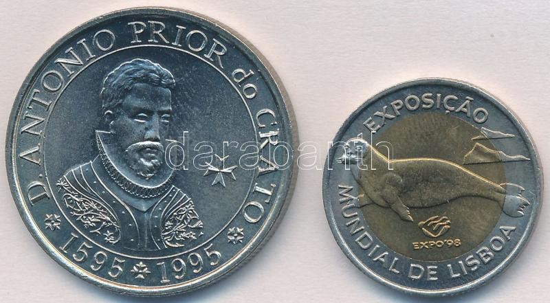 Portugália 1995. 100E Cu-Ni "Antonio Prior de Crato" + 1997. 100E Cu-Ni/Al-Br "Lisszabon Expo 98" T:1-,2
