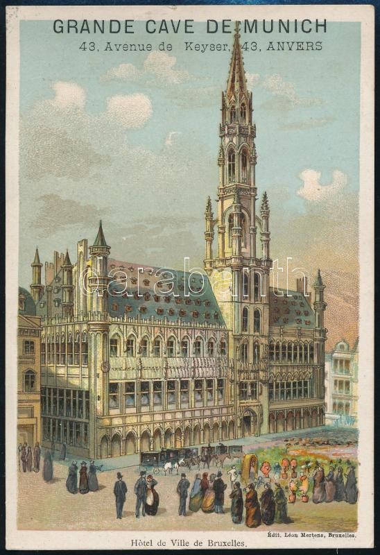 cca 1880 Antverpen 3 db nagyméretű városképes litográf reklámcímke vil...