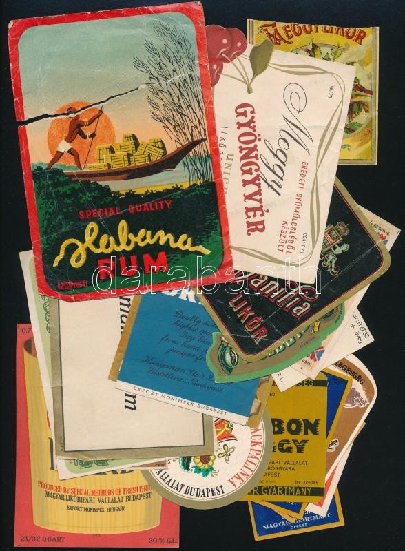 cca 1950-1970 21 db vegyes italcímke, három sérülttel, 14x10 cm és 2,5x6 cm közötti méretben