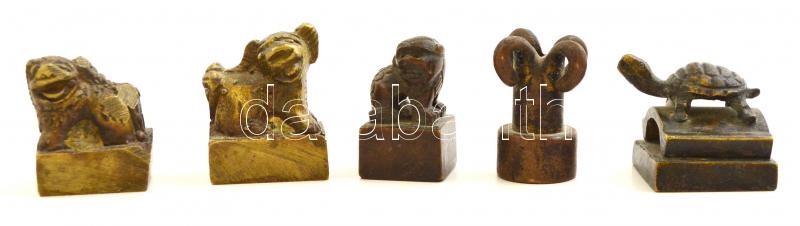 5 db bronz kínai pecsétnyomó, Fő kutyák, teknős, / Chinese seal maker...