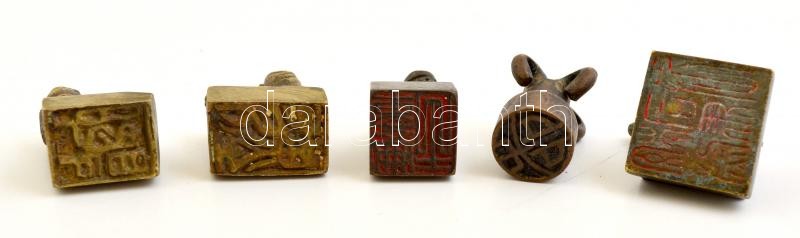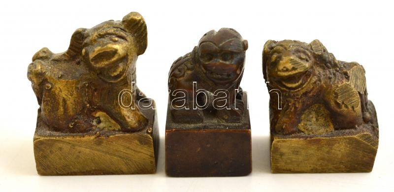 5 db bronz kínai pecsétnyomó, Fő kutyák, teknős, / Chinese seal makers bronze turtle, Pho dogs, cca 3x2,5 cm
