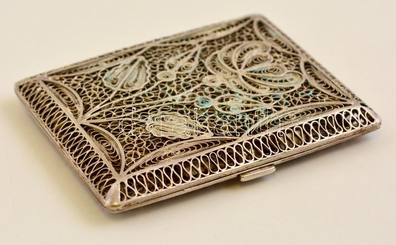 Áttört fém szelence, gazdagon díszített.8x6,5 cm