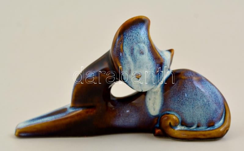 Dekoratív macska, mázas kerámia, jelzés nélkül, apró kopásokkal, m: 11 cm