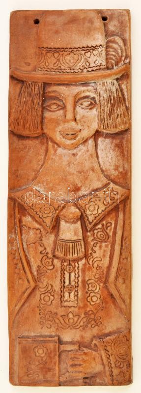 Jelzett, kerámia falikép, karcolt, hibátlan, 35×11,5 cm