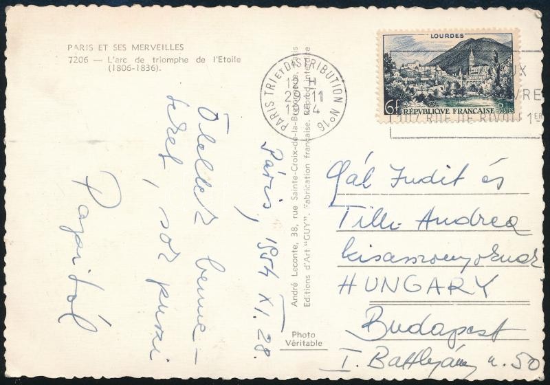 1954 Tilli Endre vívó bajnok aláírása képeslapon, Tilli feleségének