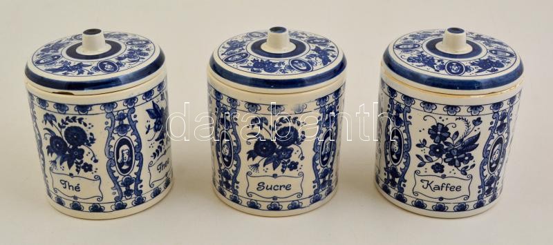3 db Delft kékfestéses fűszertartó, tetővel, kézzel festett, jelzett, ...