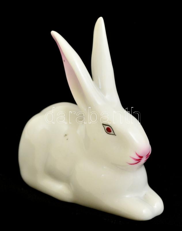 Hollóházi nyuszi, kézzel festett, jelzett, foltos, m:8 cm, h:8 cm