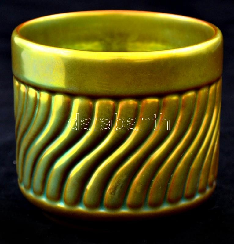 Zsolnay eozin mázas kis kaspó, jelzett, kopott, m:8 cm, d:8,5 cm