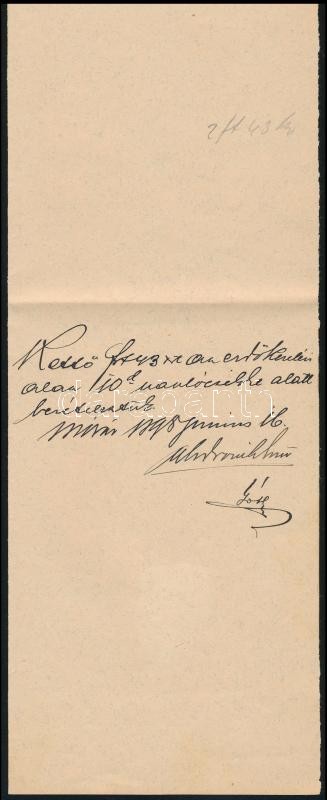 1898 Barátfalu, erdőkezelési járulék, utalvány szelvény okmányon