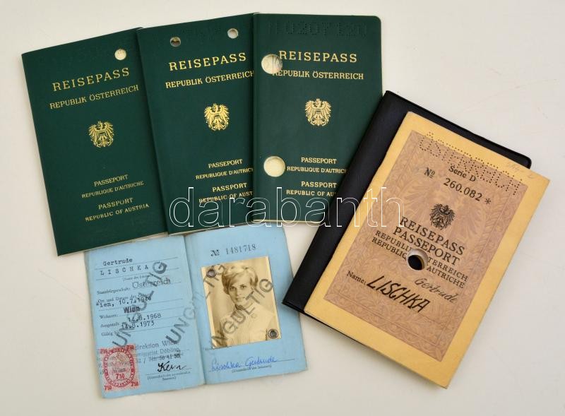 1963-1989 Osztrák személyi igazolvány és 4 db útlevél, amerikai és afr...