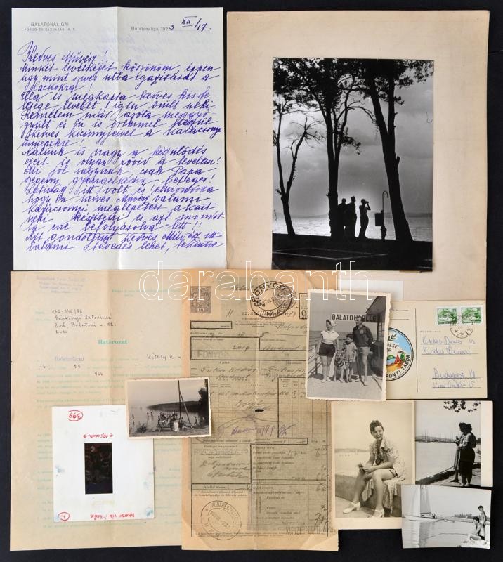 Vegyes, Balatonnal kapcsolatos papírrégiség tétel: fuvarlevél, levelezőlap, fotó, stb., összesen 11 db