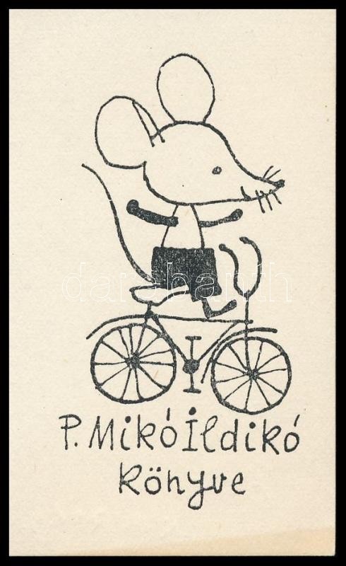 Reich Károly (1922-1988): Ex libris P Mikó Ildikó. Klisé, papír, jelzés nélkül, 7,5×4,5 cm
