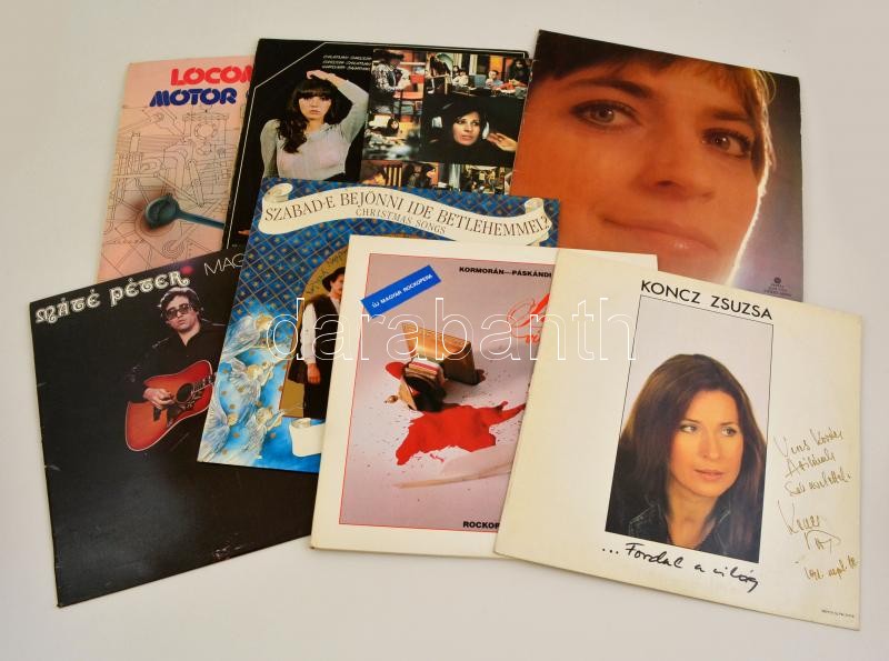 9 db régi bakelit lemez (Koncz Zsuzsa, Máté Péter, Kovács, Kati, Kaláka, LGT, stb.), közte dedikált