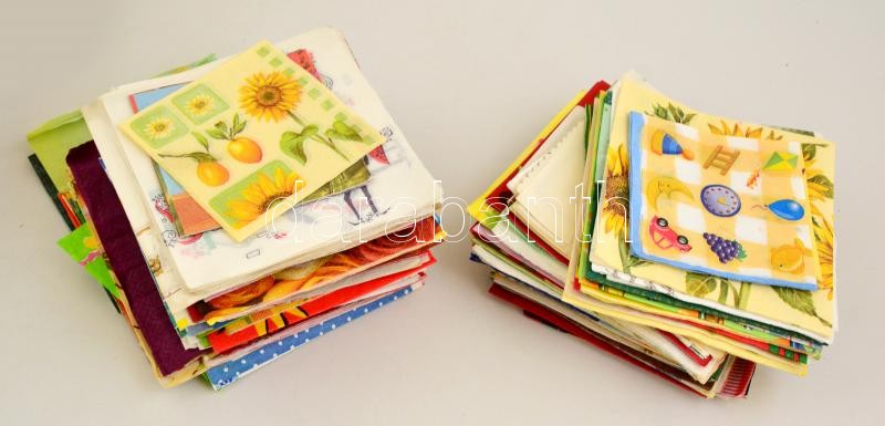 Cipősdoboznyi színes mintás szalvéta, jó állapotban