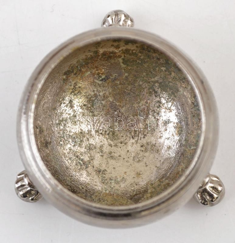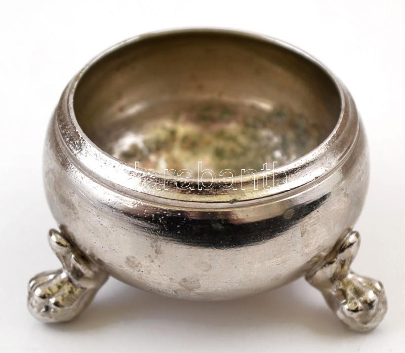 Ezüstszínű fém fűszertartó, üvegbetét nélkül, d: 4,5 cm, m: 3 cm
