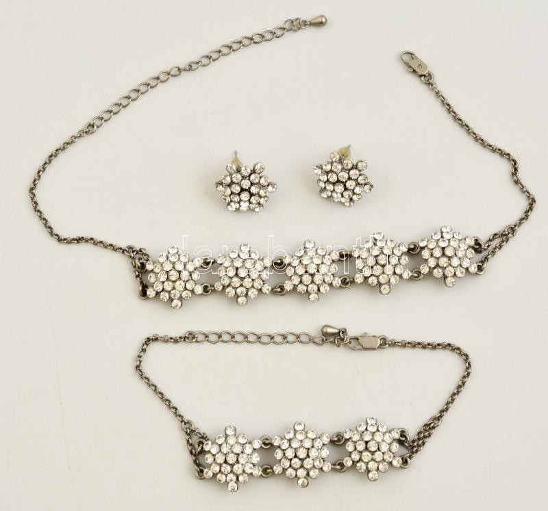 Strasszköves bizsu nyakék hozzá illő karkötővel és fülbevalóval