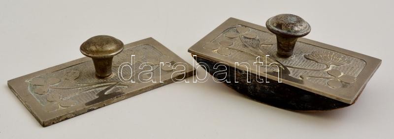 Szecessziós fém tetős tapper, egyik hiányos, jelzés nélkül, 13×6 cm (2×)