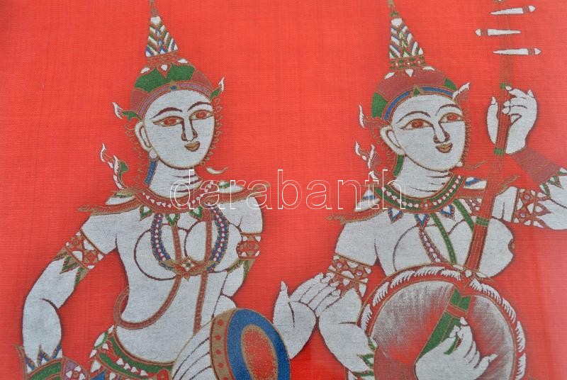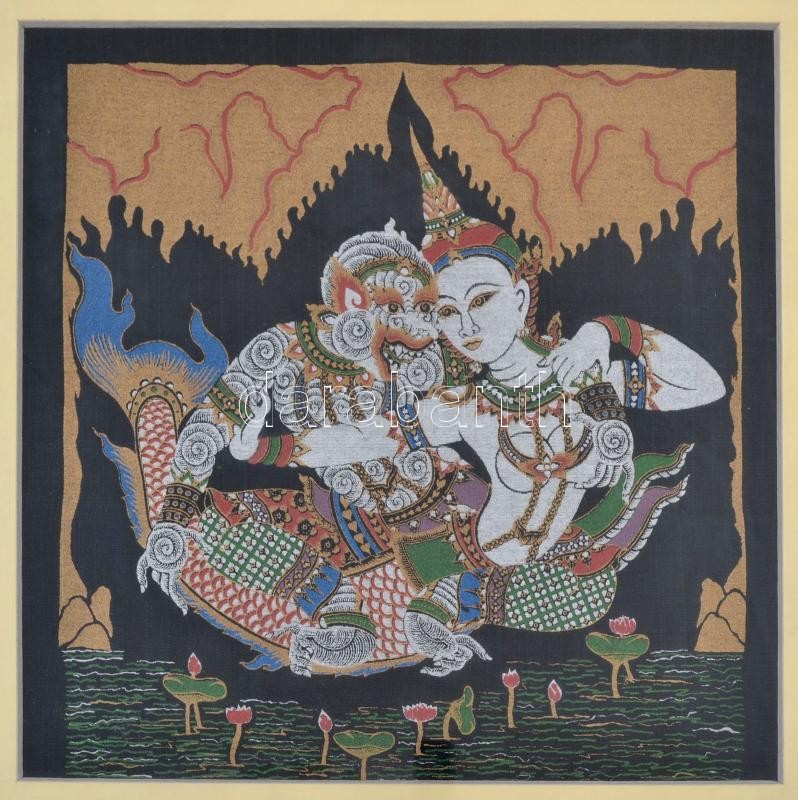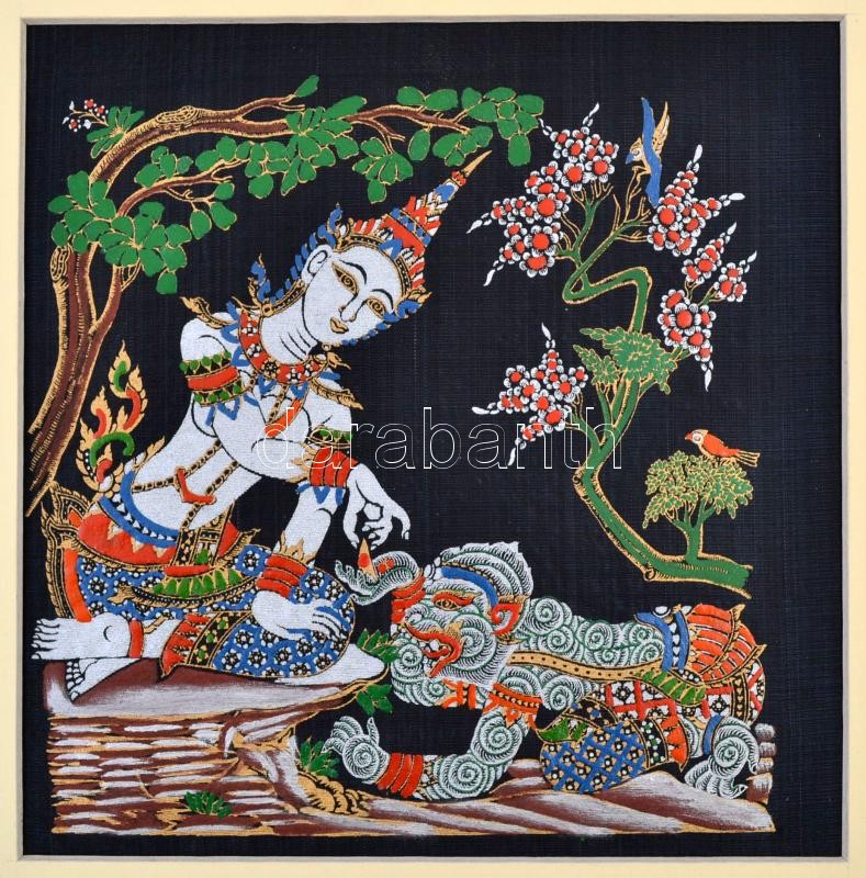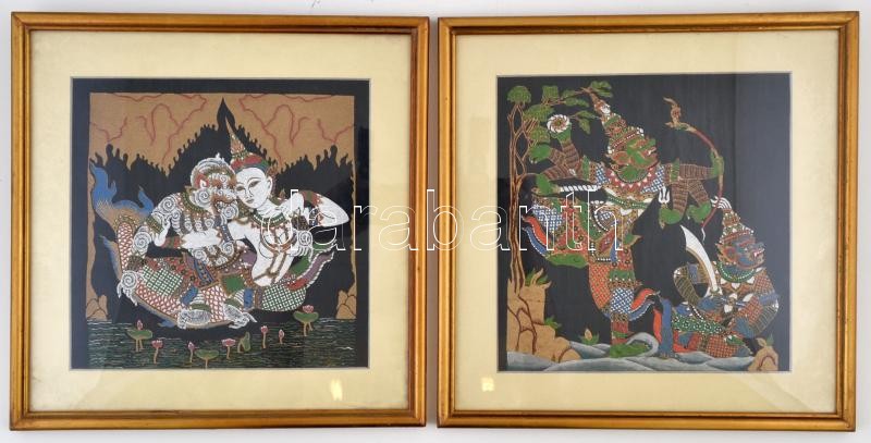 Távol keleti festett textil képek ( 6 db), üvegezett keretben ( egyben...
