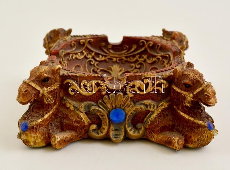 Tevés műgyanta hamutartó, kis sérülésekkel, 12×12×5 cm