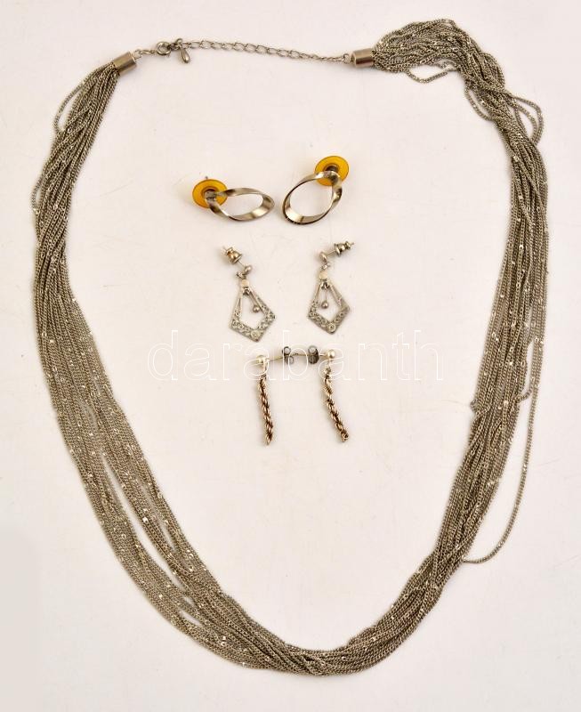 Vegyes bizsu tétel, 3 pár fülbevaló + 1 nyaklánc