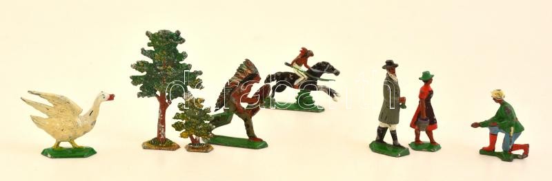 cca 1930 Festett kopott ólomkatonák, indián, liba, úriember, nő kosárr...