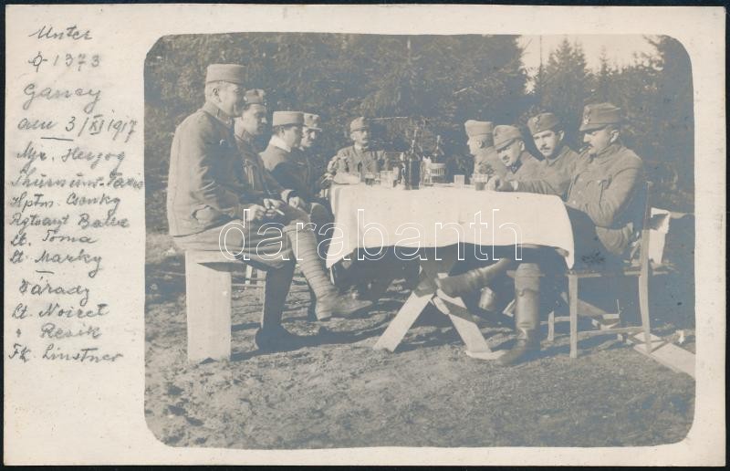 1917 Tiszti ebéd, fotólap, a szélen feliratozva a képen szereplő szemé... https://www.darabanth.com/en/329-Online-auction/329.0/Other-collectibles/Military~500027/1917-Tiszti-ebed-fotolap-a-szelen-feliratozva-a-kepen-szereplo-szemelyekkel-kozte-Varady-~II1834411