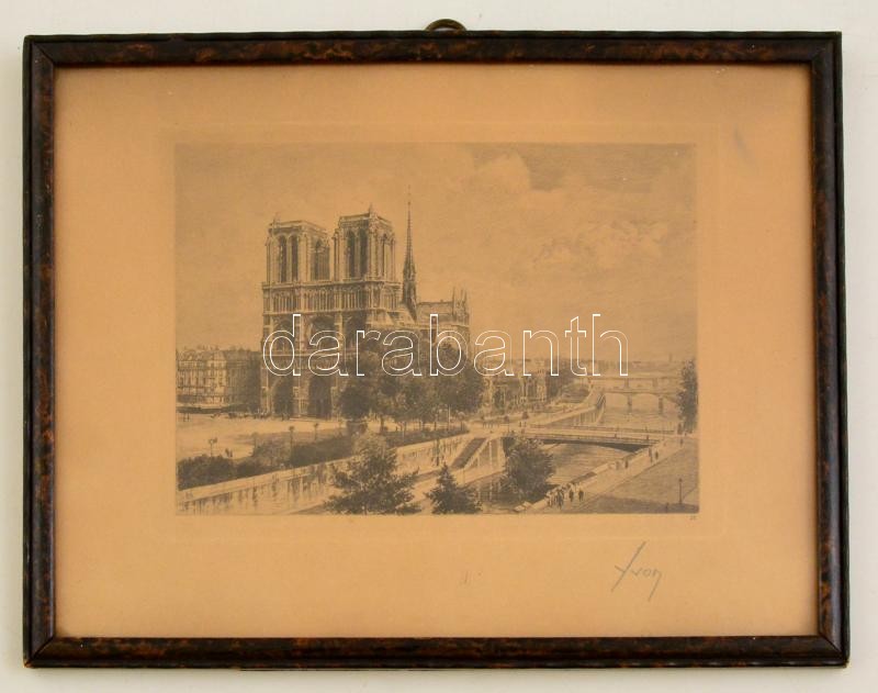 Adolphe Yvon (1817-1893) : Notre Dame. Rézkarc, papír, jelzett, üvegez...