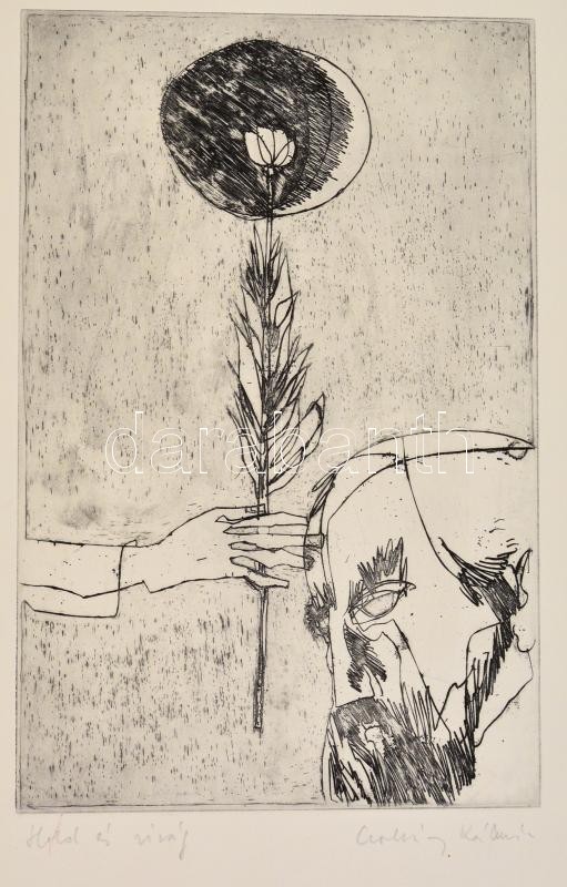 Csohány Kálmán (1925-1980): Hold és virág. Rézkarc, papír, jelzett, 29...
