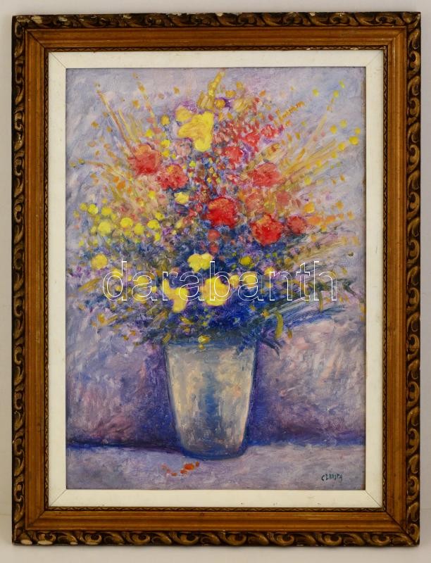 Czimra jelzéssel: Virágcsendélet. Olaj, karton, üvegezett keretben, 70×50 cm