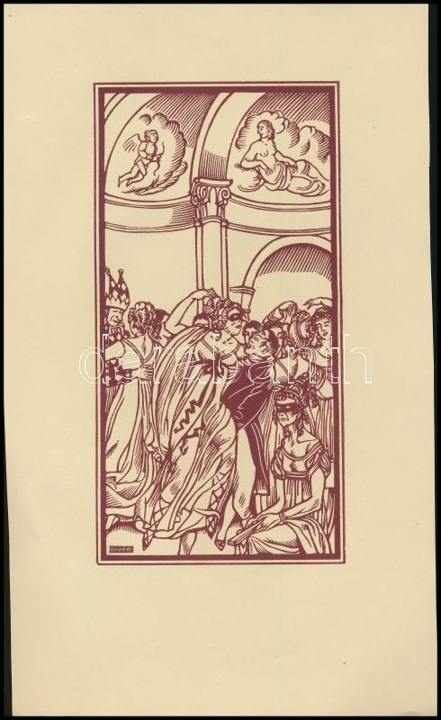 Divéky József (1887-1951): Bál, fametszet, papír, jelzett a dúcon, 16,5×8,5 cm
