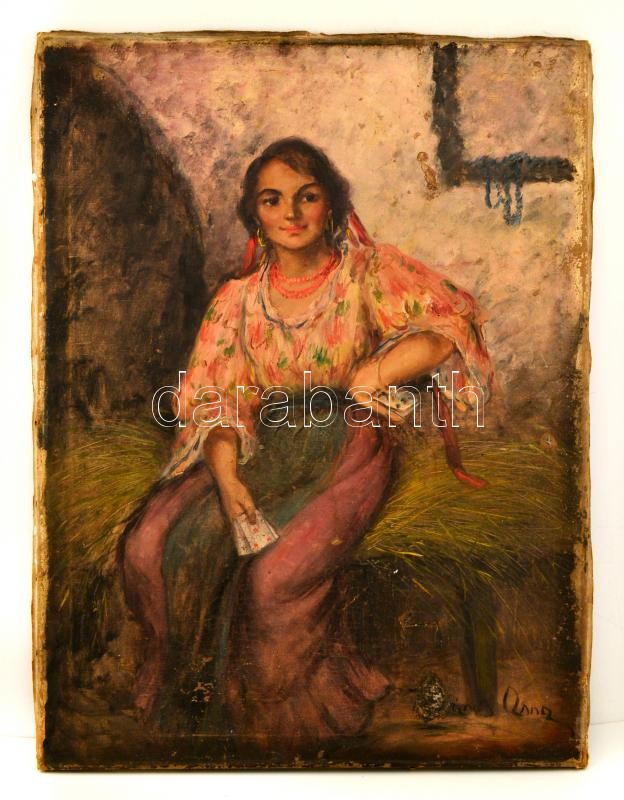 Drahos jelzéssel: Jósnő. Olaj, vászon (lyukas), 79×60 cm