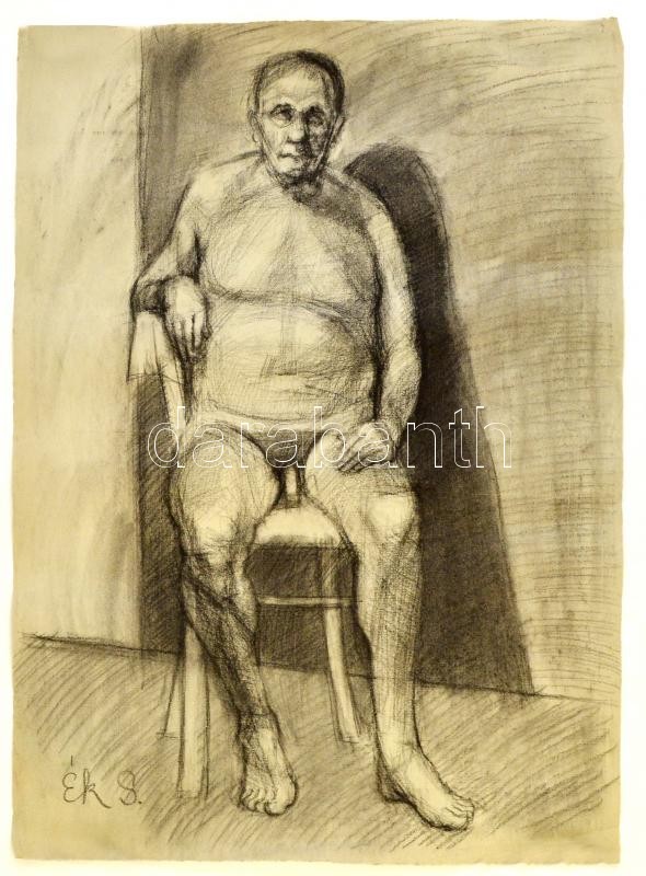Ék jelzéssel: Ülő férfi akt. Szén, papír, felcsavarva, 70×50 cm