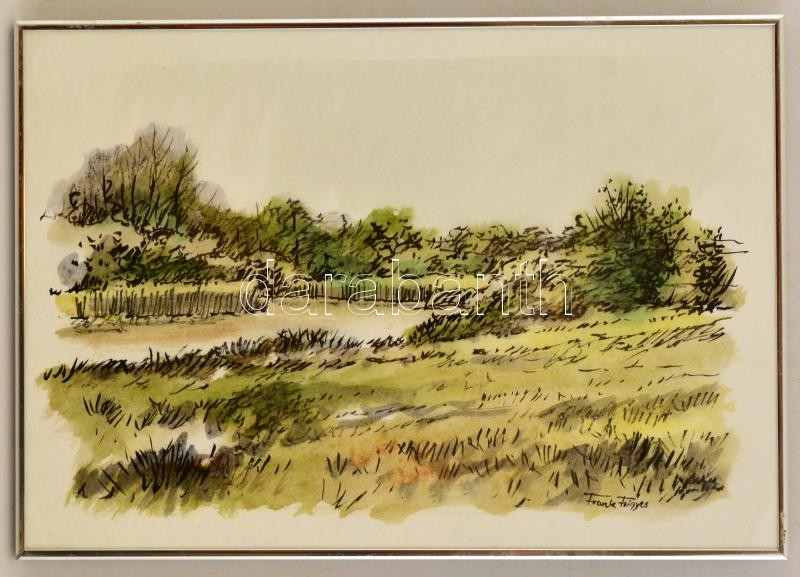 Frank jelzéssel: Tó part. Akvarell, papír, üvegezett keretben, 33×49 c...