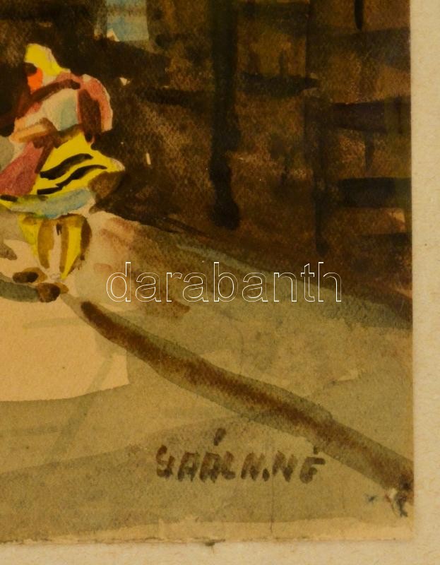 Gaálné jelzéssel: Pécs, Széchényi tér a Zsolnay kúttal, papír, akvarel...