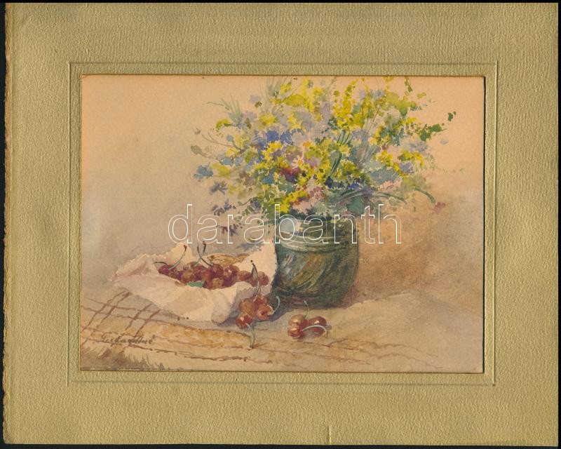 Gebhardt Lajosné (1866-?): Asztali csendélet. Akvarell, papír, paszpar...