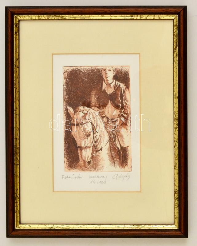 Gulyás László (1960-): Fehér póni. Rézkarc (14/100), papír, üvegezett ...