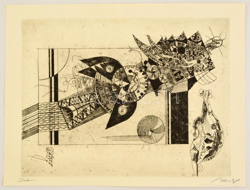 Hincz Gyula (1904-1986): Dal. Rézkarc, papír, jelzett, 29×39 cm