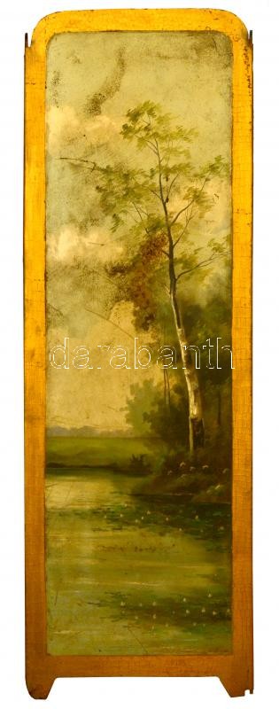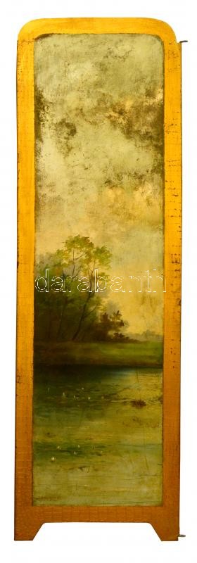 Jelzés nélkül: 3 db paraván tájképekkel, vaslemez, sérült, 120×33 cm (...