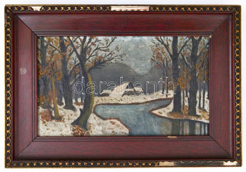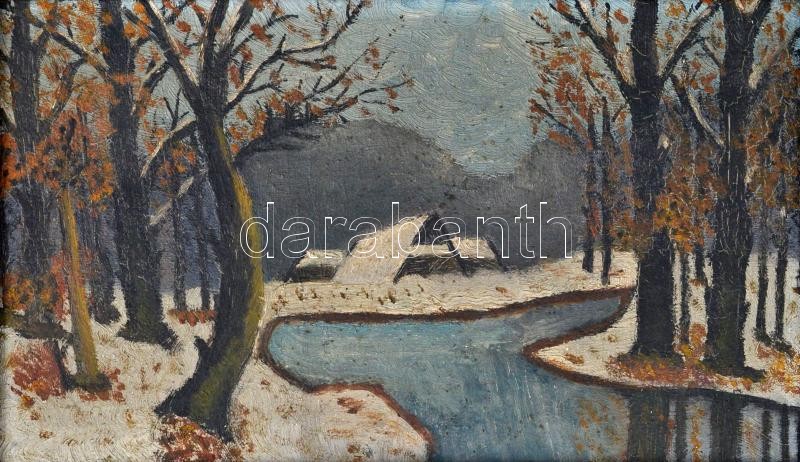 Jelzés nélkül: Téli háztetők. Olaj, vászon, keretben, 17×29 cm